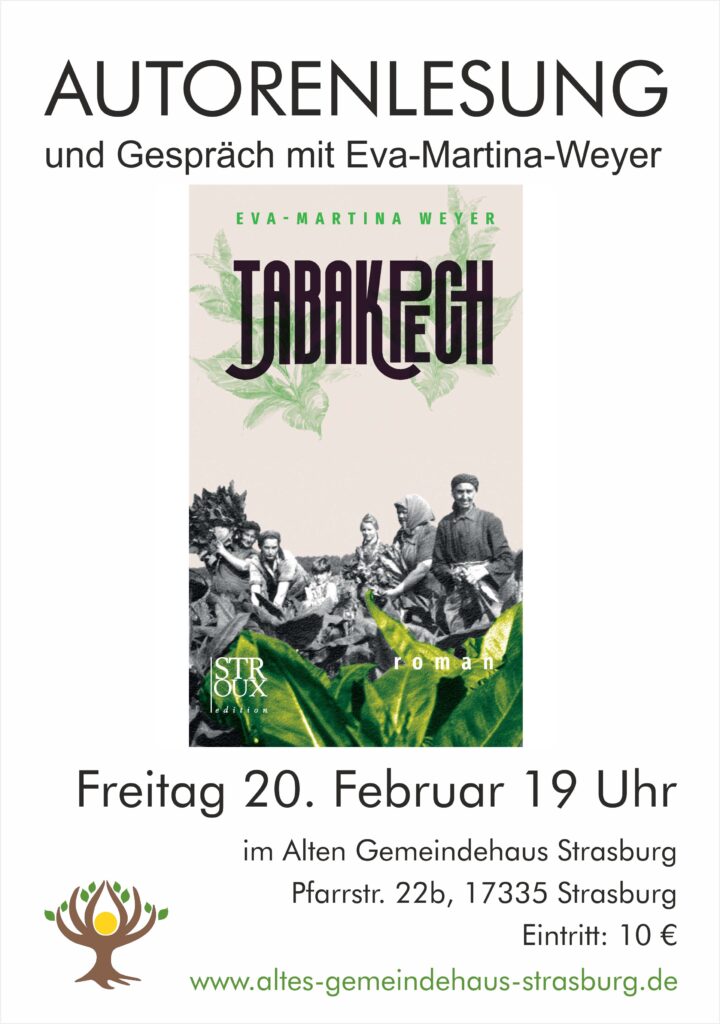 Eva-Martina Weyer liest aus Ihrem Buch „Tabakpech“.