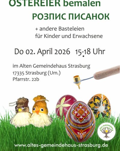 Jeden Donnerstag ist unser Haus von 16 bis 18 Uhr geöffnet und es können Bücher ausgeliehen werden. Sie finden bei uns verschiedenen Romane, Krimis, DDR-Geschichten, Kinderbücher und mehr. Die Bücher haben wir zum Teil aus den Beständen der Strasbuger Stadtbibliothek übernommen und schaffen auch regelmäßig neue an. Wir freuen uns über Ihren Besuch!